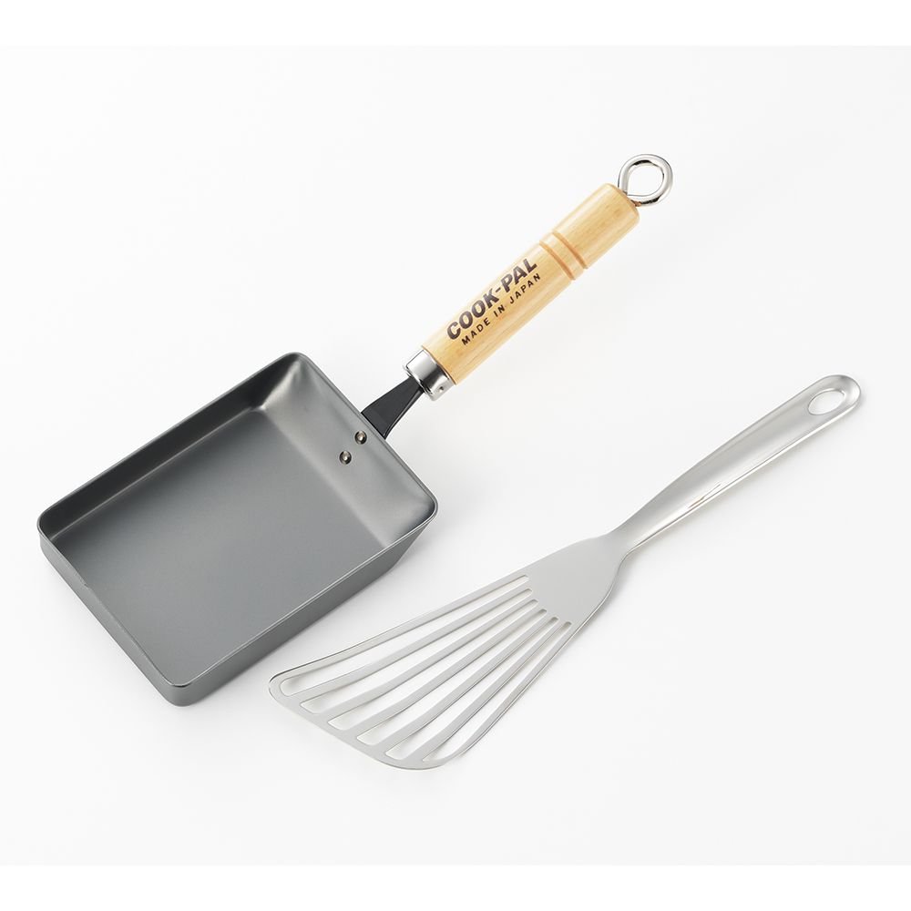 The Egg Pan S is a rectangular steel frying pan for making Japanese rolled omelettes for restaurants and family meals. This pan is compatible with gas, electric, ceramic and induction stoves. Total dimensions with wooden handle: 106x340x25 mm. Other sizes are available for this collection: rectangular Egg Pan M and Square Egg Pan L.